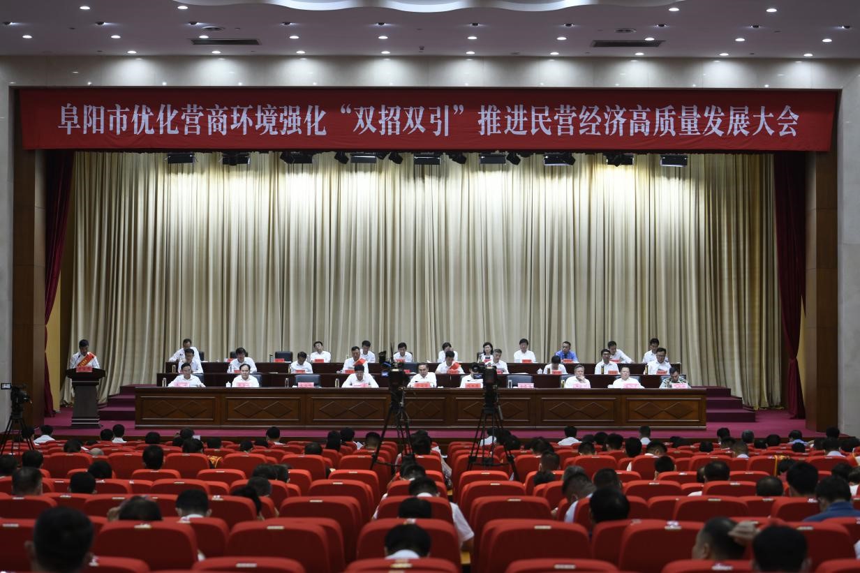 6 月 30 日下午,阜阳市优化营商环境强化“双招双引”推进民营经济高质量发展大会在阜阳市委党校召开。阜阳市委书记孙正东出席并讲话,市委副书记、市长刘玉杰主持会议。会上,ledong.乐动(集团)智能科技股份有限公司网站,总裁朱保义代表受表扬优秀民营企业发言。